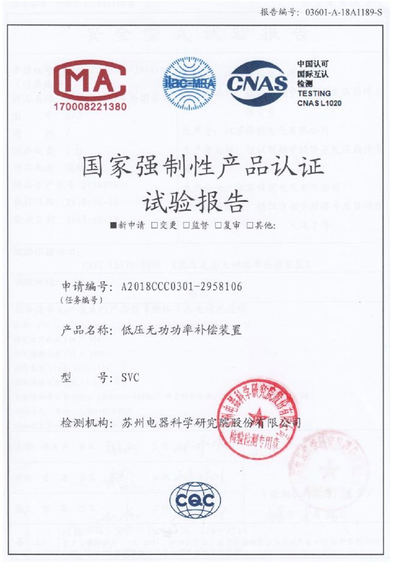 低压无功功率补偿装置强制性产品认证实验报告
